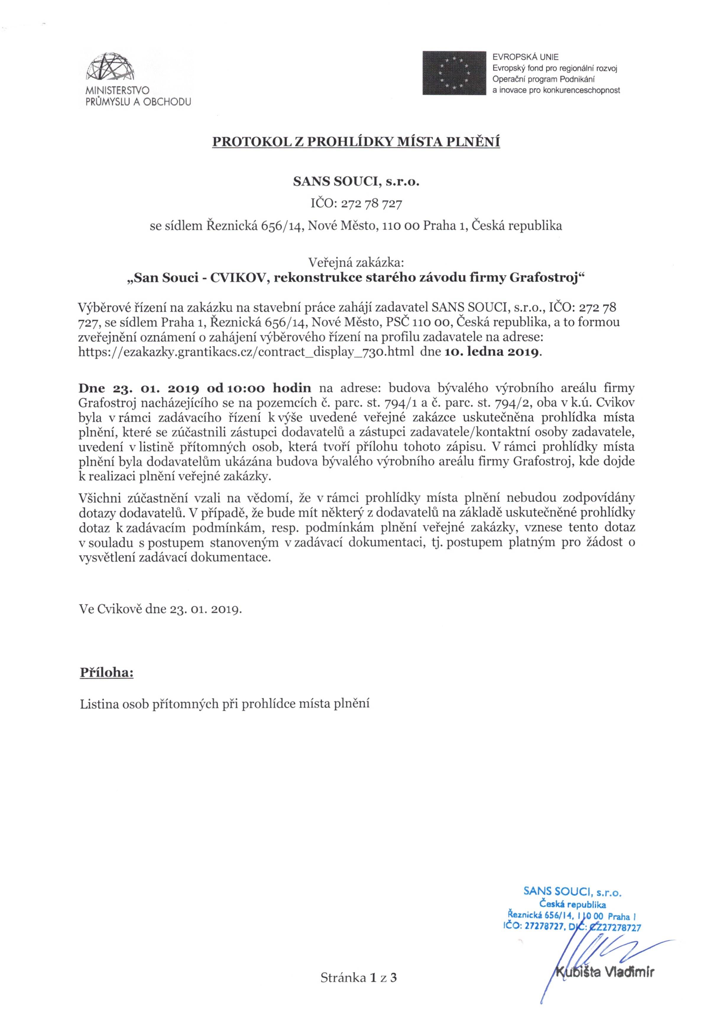 | Název: | Zápis z prohlídky místa plnění |